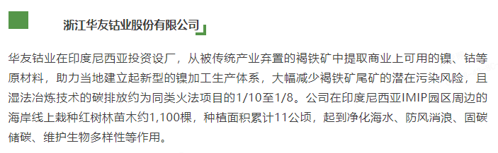 In the future, Huayou Cobalt will continue to deepen its ESG practices, working hand-in-hand with global partners to contribute professional expertise and innovative wisdom to the high-quality development of the new energy industry.